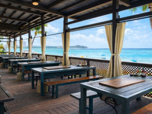 ビーチを目の前にしたバーベキューテラスで、海からの潮風に吹かれながらお食事をお楽しみください。南国気分を満喫できるバーベキューです。