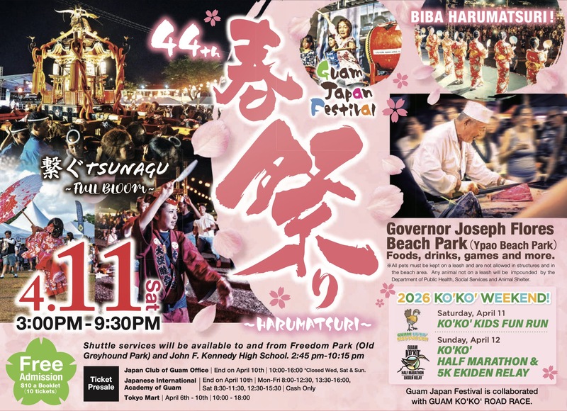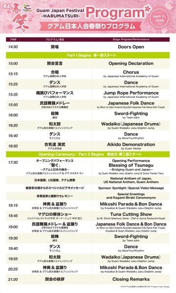 「第44回 グアム日本人会 春祭り」開催可否については、グアム日本人会公式HP(https://guamjpc.org/)にてご確認ください。